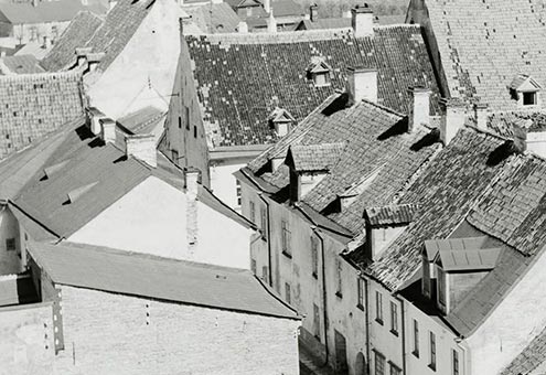 | На рисунке северные фасады южной стороны ул. Рюйтли. 1:500 вверху - довоенный вид внизу - предлагаемый вид восстановления промежутки между строениями - ул. Койду, ул. Раху, ул.Пагари | |